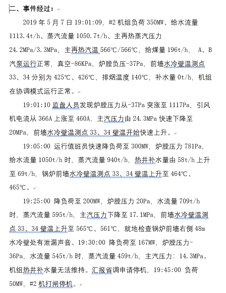 如果泄爆管排安裝有金屬壁溫測點,其壁溫測點數(shù)值也會有明顯異常,通常表現(xiàn)為快速升溫,并高歷史同工況的歷史值。